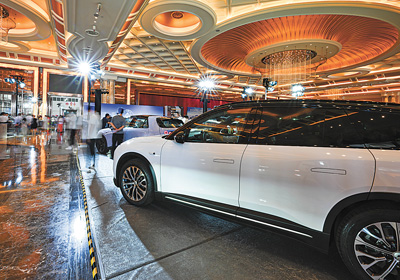 在海南国际会展中心,人们在新能源汽车下乡活动上参观。 新华社记者 蒲晓旭摄
